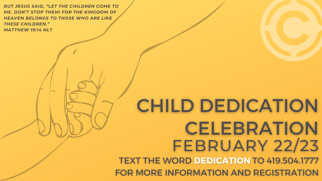 Child dedication is a commitment of parents and our church together to dedicate these children to God and to help them learn about Jesus and grow in their faith. If you have children that you would like to dedicate to God, we want to celebrate that with you, Just Text the word DEDICATION to 419.504.1777 or click HERE for more information and registration.