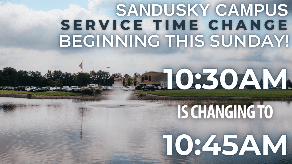 This weekend our 10:30AM service at the Sandusky Campus is changing to begin at 10:45AM - this is a permanent change moving forward!