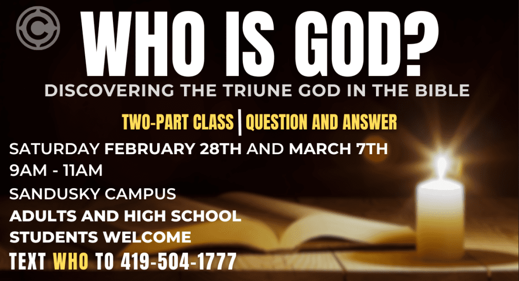 Join us at the Sandusky Campus for a two-week class as we explore the triune nature of God, address common misconceptions, and consider how the Trinity shapes our understanding of God’s love and our relationship with Him.