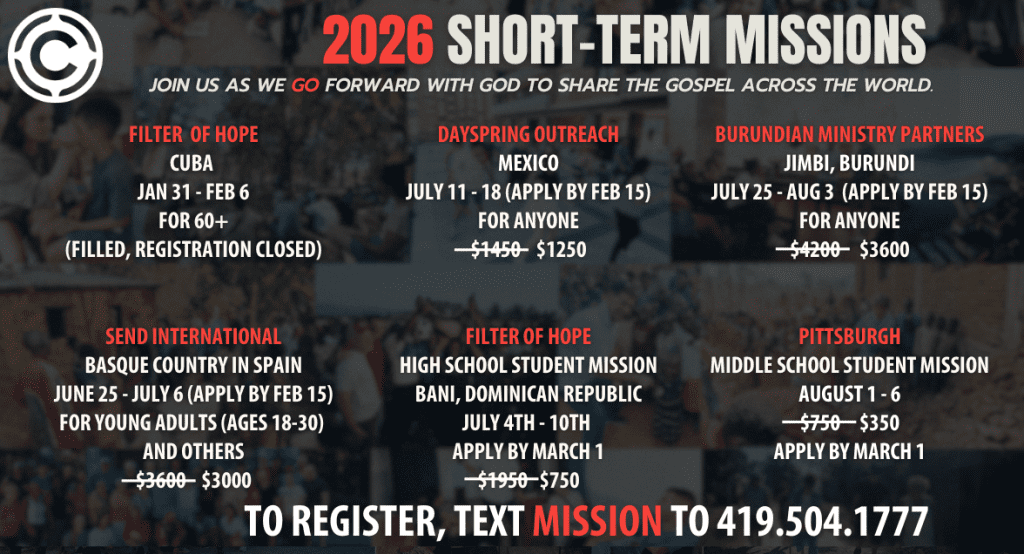 Our high schoolers just returned from retreat. Students left on Friday who had never met Jesus and came home on Sunday committed to following him for the rest of their lives. Others reconnected with both God and each other, committing to get back in the fight. If this can happen in two and half days, wait until you see what happens in a week at camp! If you have a middle schooler or high schooler and want to get them signed up, text MIX2026 (middle school) or MOVE2026 (high school) to 419.504.1777. Because of the generosity of The Chapel, we are able to pay the first $200 of every student. That brings the total down to $449 for each camp!