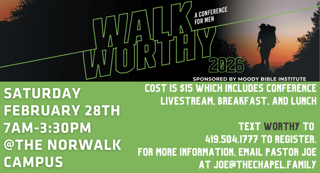 Chapel Men - we invite you to join us for the Walk Worthy Livestream on Saturday, February 28th at our Norwalk Campus.