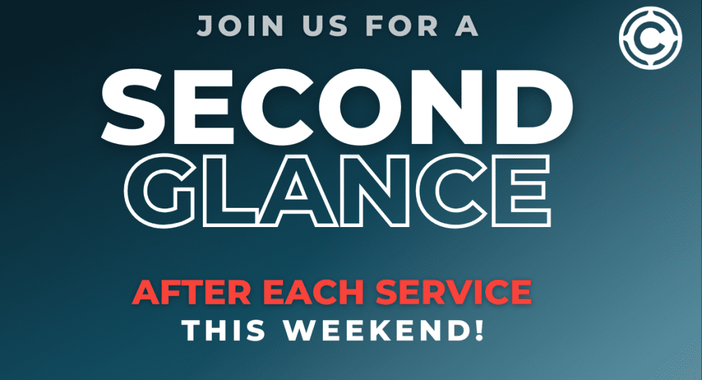 We would love to invite you to our "Second Glance" coming up THIS WEEKEND after each service! This is a great time to meet our pastors and staff, learn a bit about us and to ask any questions you may have. No need to register, just show up!