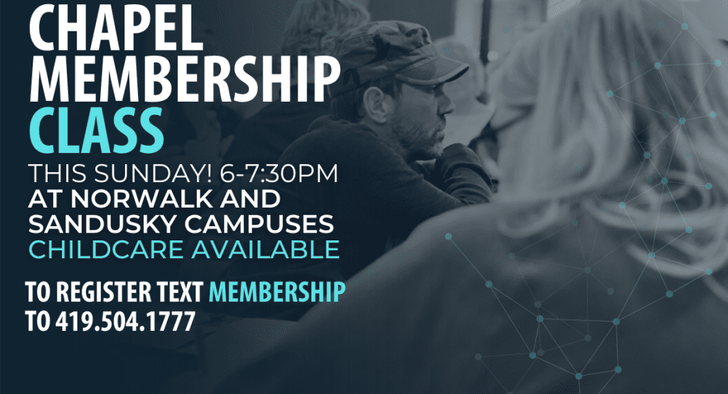 There is a difference between attending The Chapel and actually being a Member of The Chapel. Want to find out what that means? During this class we will look at the Mission, Beliefs and Values that make The Chapel what it is. We will share what it means to Belong, Believe, and Become more like Jesus. You will hear more of what being a “MEMBER” at The Chapel is all about. We want to personally invite you to consider attending our upcoming Membership Class happening at all three campuses this Sunday, October 26, 6-7:30PM. We will have childcare available if needed as well. Would you take a moment to text the word 'MEMBERSHIP” to 419.504.1777 to register so we can be ready for you!